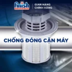 - Loại bỏ tạp chất và cặn vôi: Muối Finish giúp ngăn ngừa cặn bám, han gỉ trên linh kiện máy và trên bát đĩa, bảo vệ và kéo dài tuổi thọ của máy rửa bát.