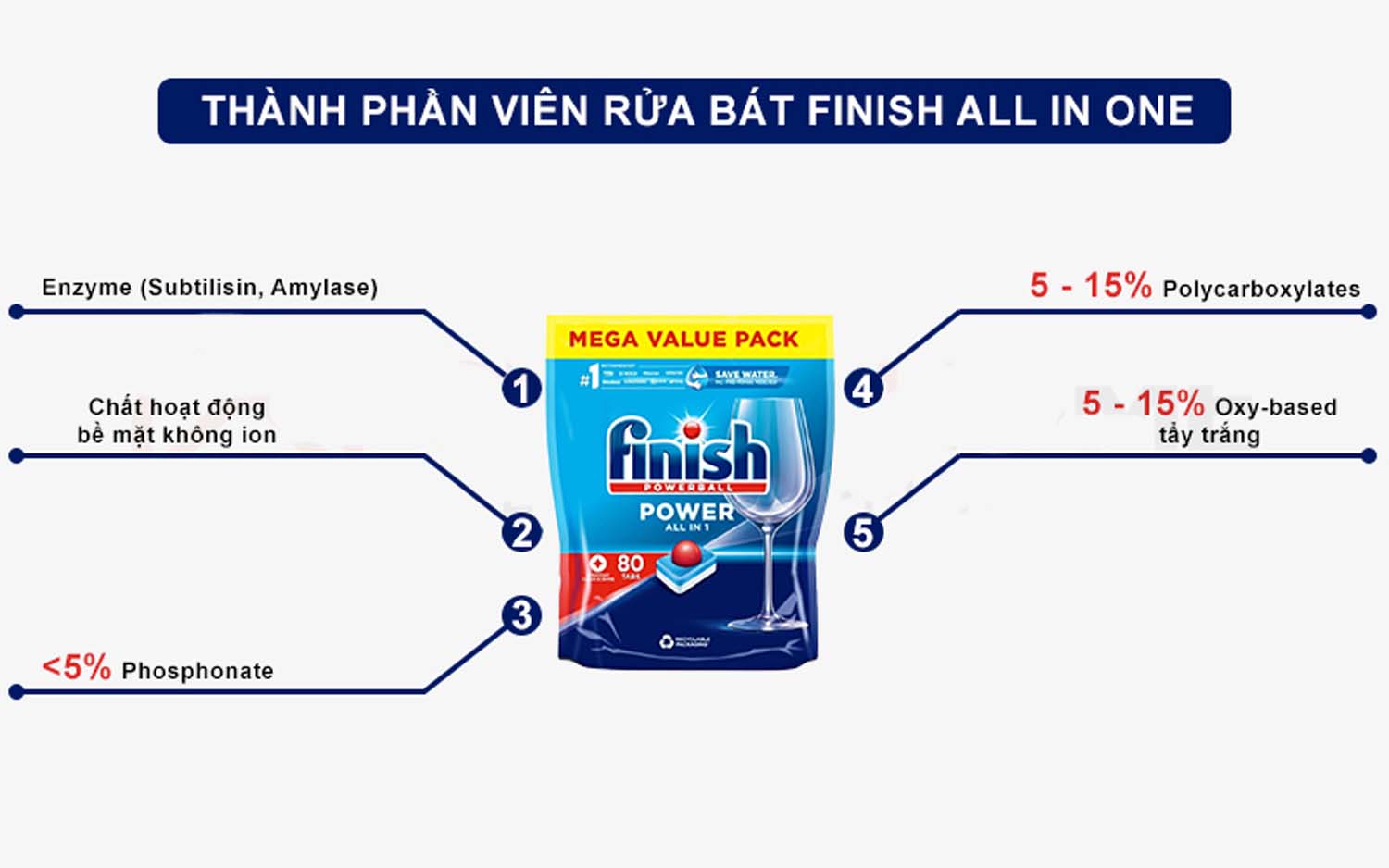 Thành phần của Viên rửa bát FINISH Power All in 1 túi 80 viên