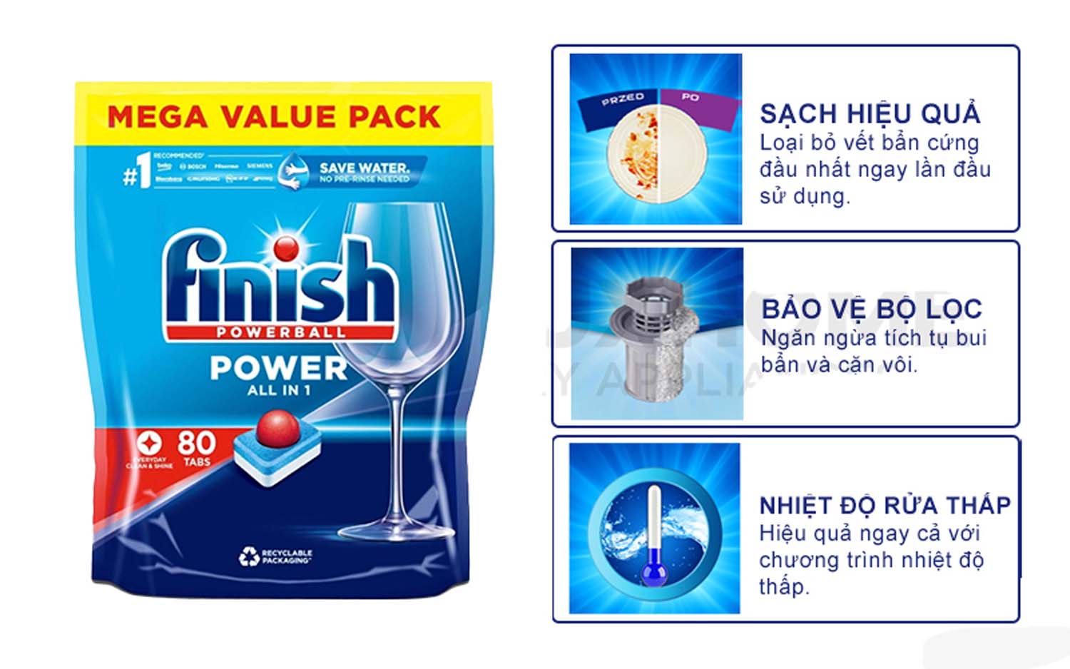 Tính năng Viên rửa bát FINISH Power All in 1 túi 80 viên