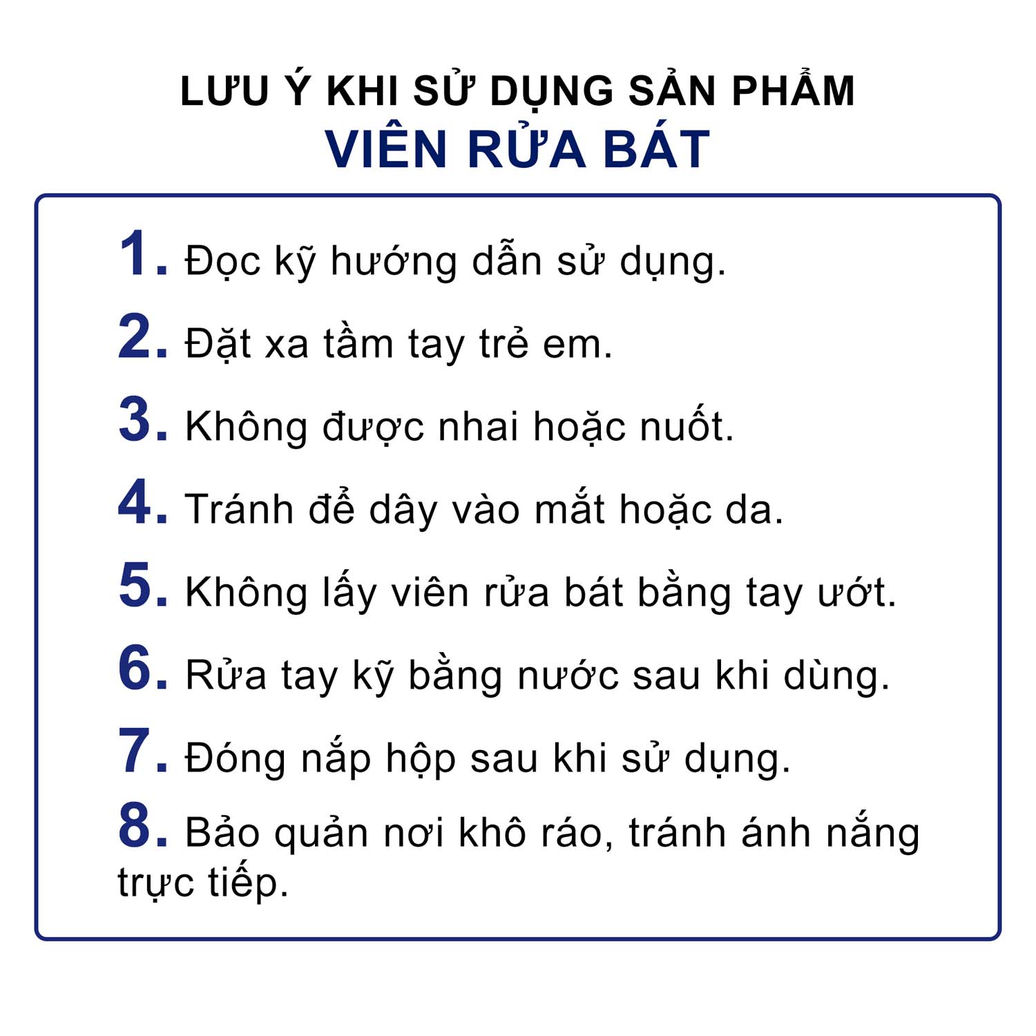 - Viên rửa bát không phải thực phẩm, không được nhai hoặc nuốt.