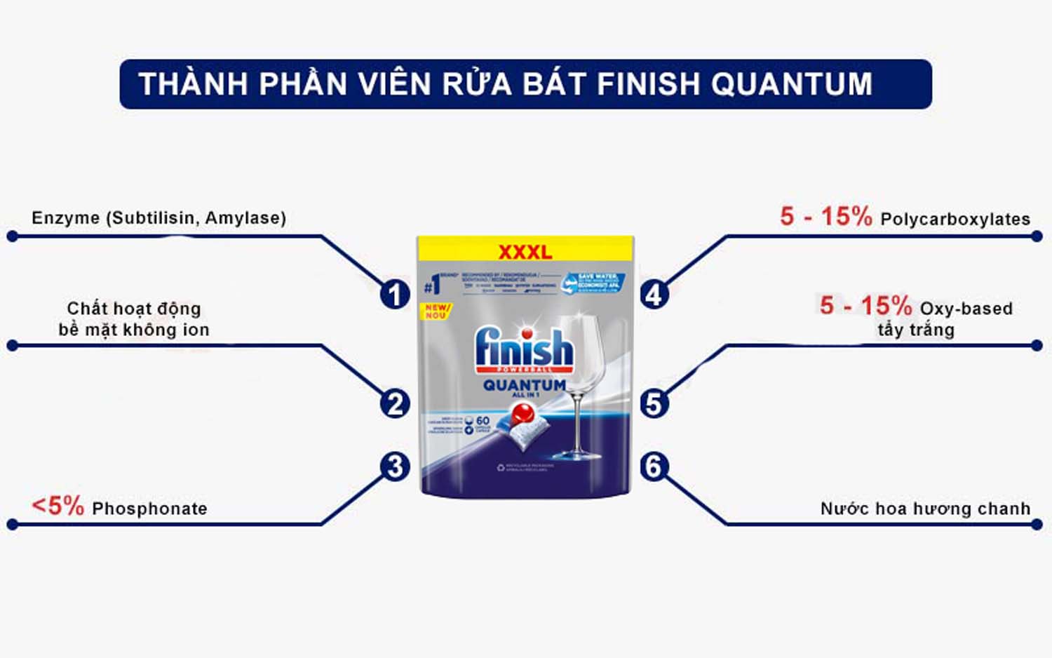 Thành phần của Viên rửa bát FINISH Quantum All in 1 túi 60 viên