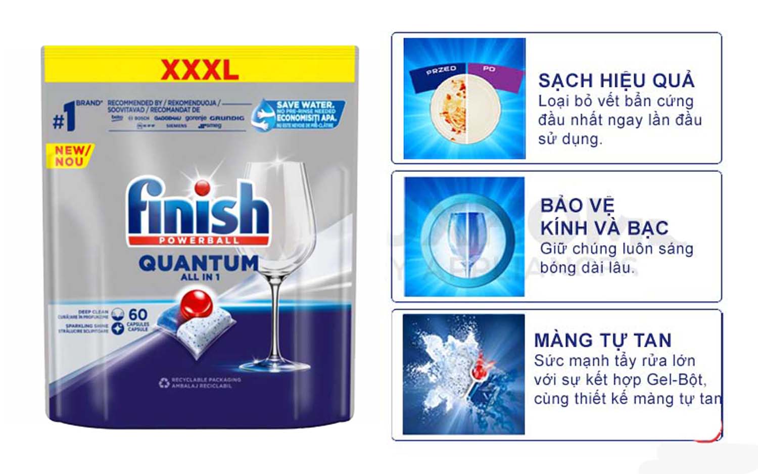 Tính năng của Viên rửa bát FINISH Quantum All in 1 túi 60 viên