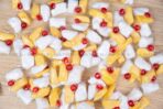 - Đặt một viên rửa vào ngăn chứa (không cần bóc lớp màng vì nó tự tan trong nước). Tùy vào số lượng và độ bẩn của bát đĩa, có thể dùng nửa hoặc cả viên.